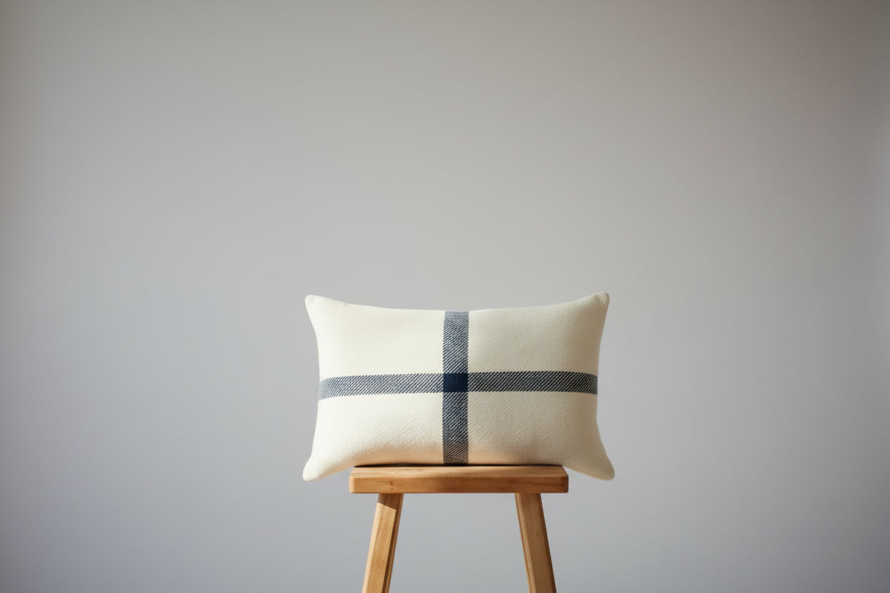 BRITISH BREED Cushion - Cream & Navy Centre Check